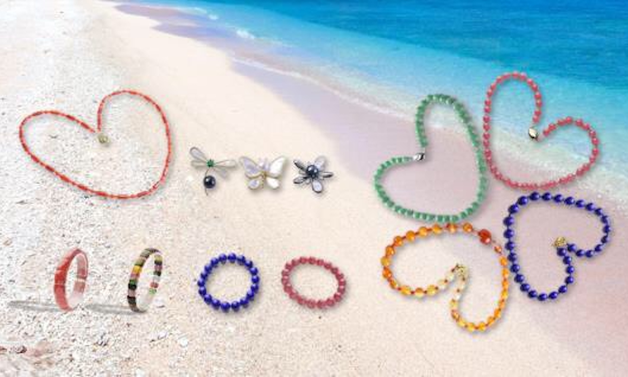 主な取り扱い素材には、水晶、瑪瑙、虎目石、翡翠、アメジスト、ルビー、日本あこや真珠、南洋真珠、赤サンゴなど、多彩な天然石を取り揃えております